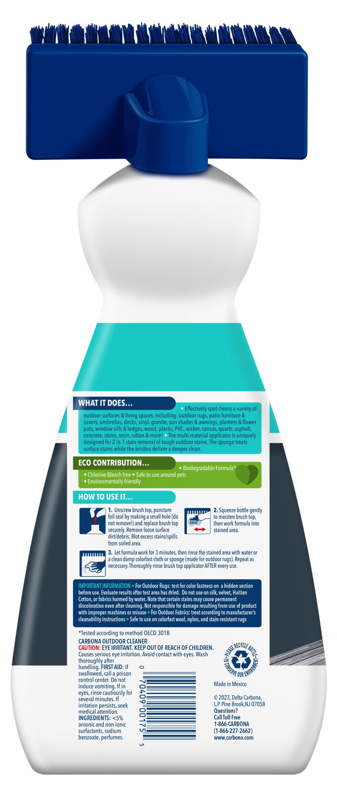- Effectively spot cleans a variety of outdoor surfaces & living spaces, including: outdoor rugs, patio furniture & covers, umbrellas, decks, vinyl, granite, sun shades & awnings, planters & flower pots, window sills & ledges, wood, plastic, PVC, wicker, canvas, rattan, quartz, asphalt, concrete, stone, resin, rattan & more!