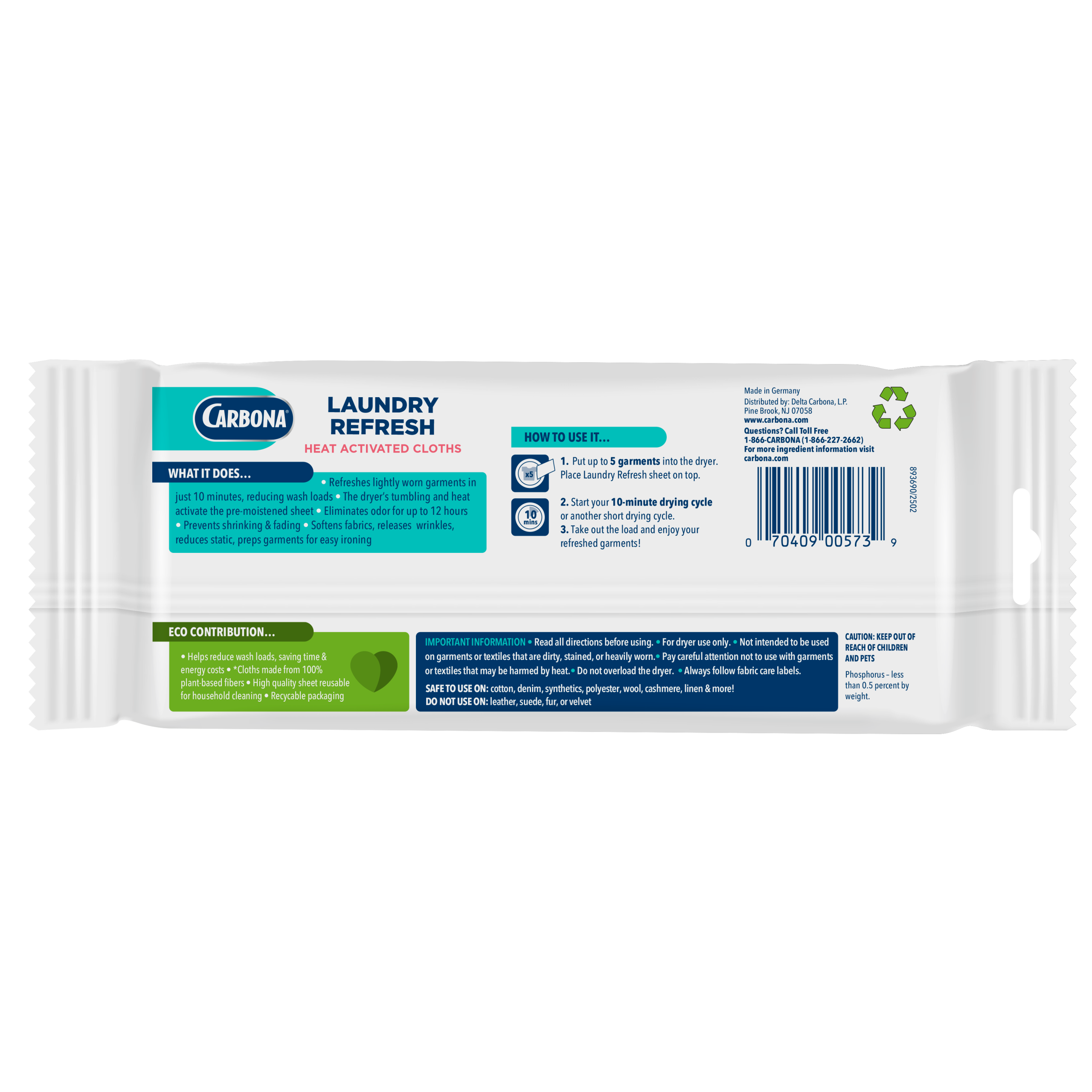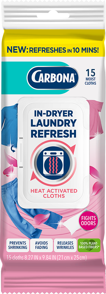 Releases fabric-refreshing agents through dryer heat and tumbling—no spray or ironing needed.