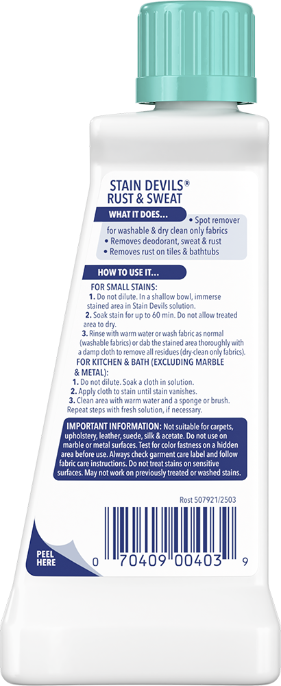 Effectively treats stubborn underarm marks and rust stains on fabrics and select hard surfaces. - Formulated For Mineral And Body Residue Stains: